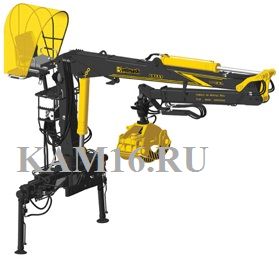 Гидрманипулятор ОМТЛ-97 устанавливается за кабиной или на задней части грузовой платформы автомобиля КамАЗ